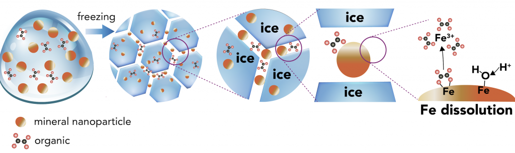 My research aims to delve into the fascinating interactions occurring between iron minerals and organic compounds within the cryosphere. While traditionally viewed as chemically inert, ice surprisingly hosts intricate reaction sites, namely intergrain boundaries, that act as centers for chemical transformations (dissolution, redox, etc.). These regions contain the eutectic liquid, which is supercooled liquid water. Fueled by both curiosity and the urgency posed by the accelerated melting of polar ice, this Ph.D. project is dedicated to uncovering the underlying chemistry governing the interplay between minerals and organics within the ice. By shedding light on these fundamental processes, I aim to make meaningful contributions to our comprehension of ice-bound chemical phenomena.